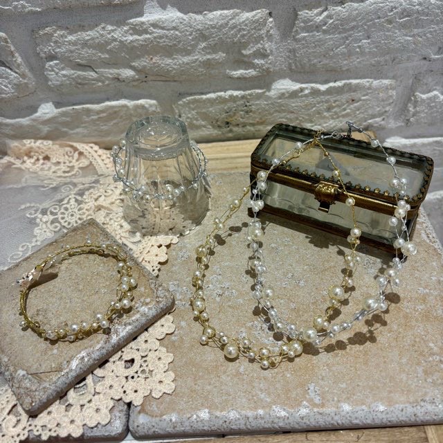 本日ご紹介するのはワイヤーパールのネックレスとブレスレットです!