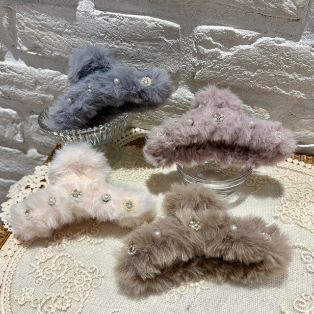 装飾ビジュー付ファーバンスクリップ