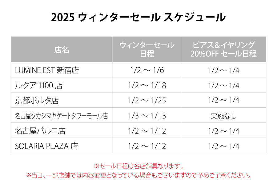 ※セール日程は各店舗異なります。 ※当日、一部店舗では内容変更となっている場合もございますので予めご了承ください。