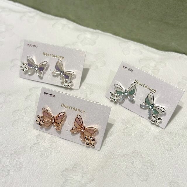透け感バタフライが可愛いチタンポストピアスやさしいカラーが春にピッタリのアイテムです♪